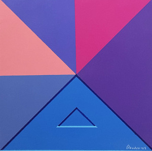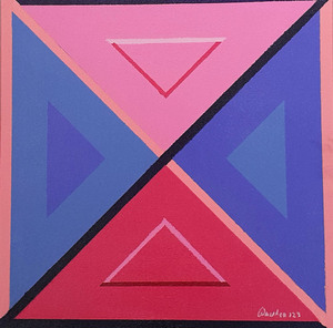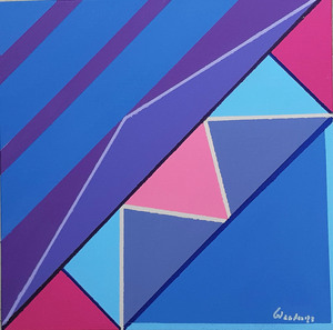 Naast het stippelen, druppelen en alle andere tools en truukjes. vind ik het ook heerlijk om met meer herkenbare beeldtaal te werken. Het zijn vaak de materialen die bepalen welke kant een doek uitgaat, bij deze reeks is de kwast het gereedschap. Spelen met vormen en kleuren , soms losjes maar soms ook met een grafische inslag.
